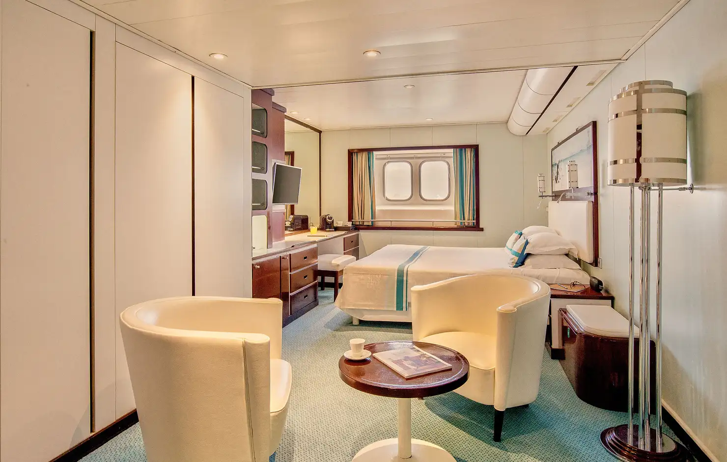 Su Fiji, il ponte più prestigioso in assoluto, la vostra cabina Deluxe ha due oblò verso l'esterno. Godetevi lo spazio extra e l’arredamento in stile, ispirato alle onde azzurre dell’oceano che si frangono sotto di voi.