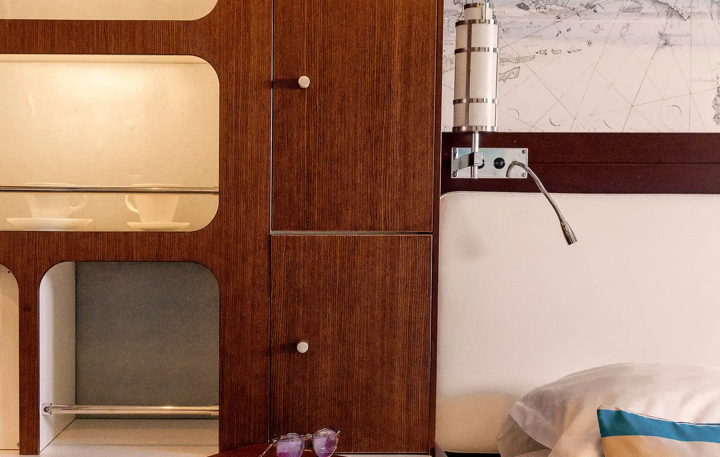Queste due cabine sul ponte più basso, Borneo, sono comode ed eleganti. Il design in stile ricorda l’architettura navale con preziosi arredi in legno.