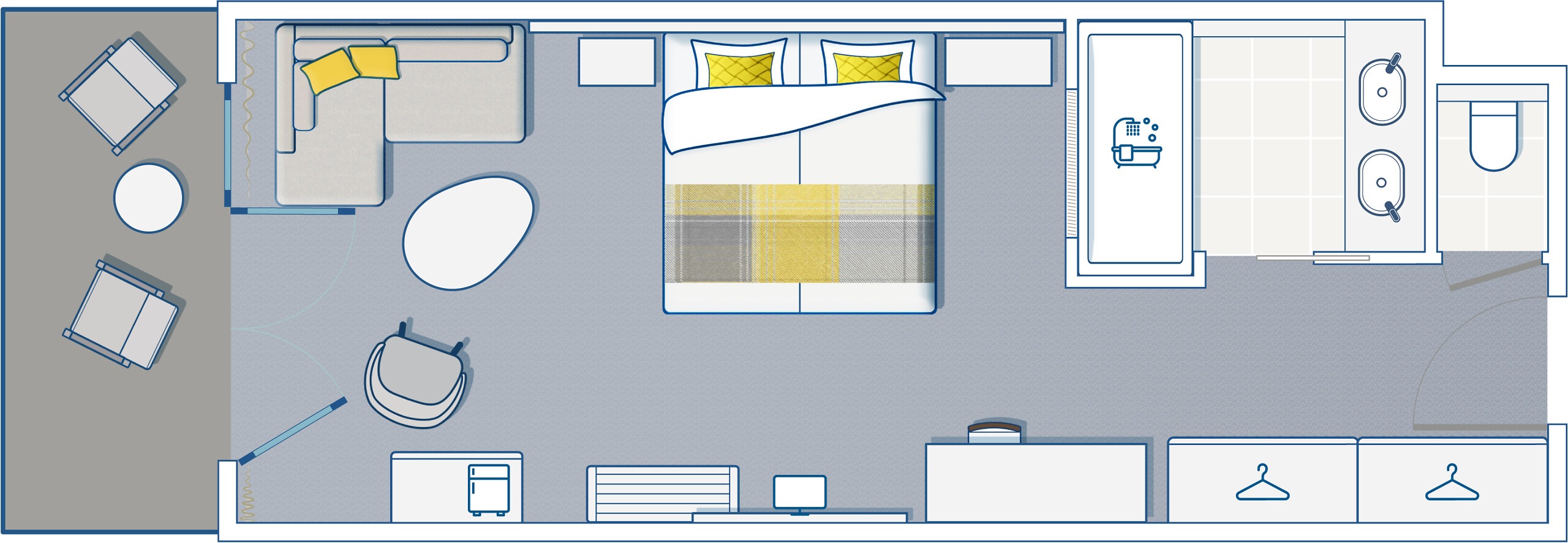 Per le coppie che amano lo stile più moderno senza compromessi in fatto di comfort. La Deluxe ha il letto matrimoniale e il balcone arredato. Ogni più piccolo particolare è nello stile più moderno.