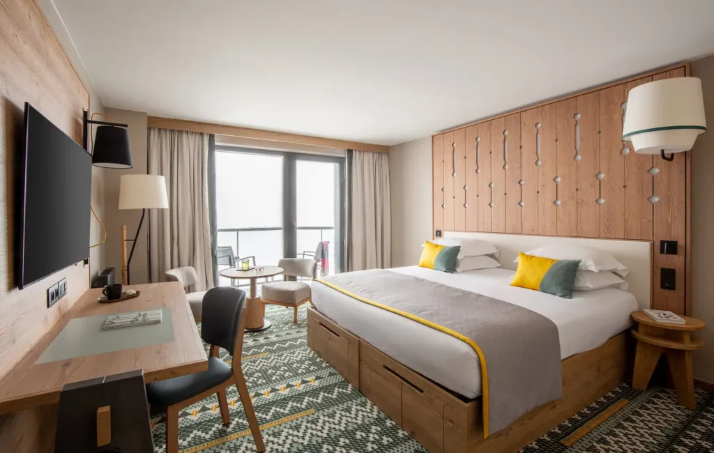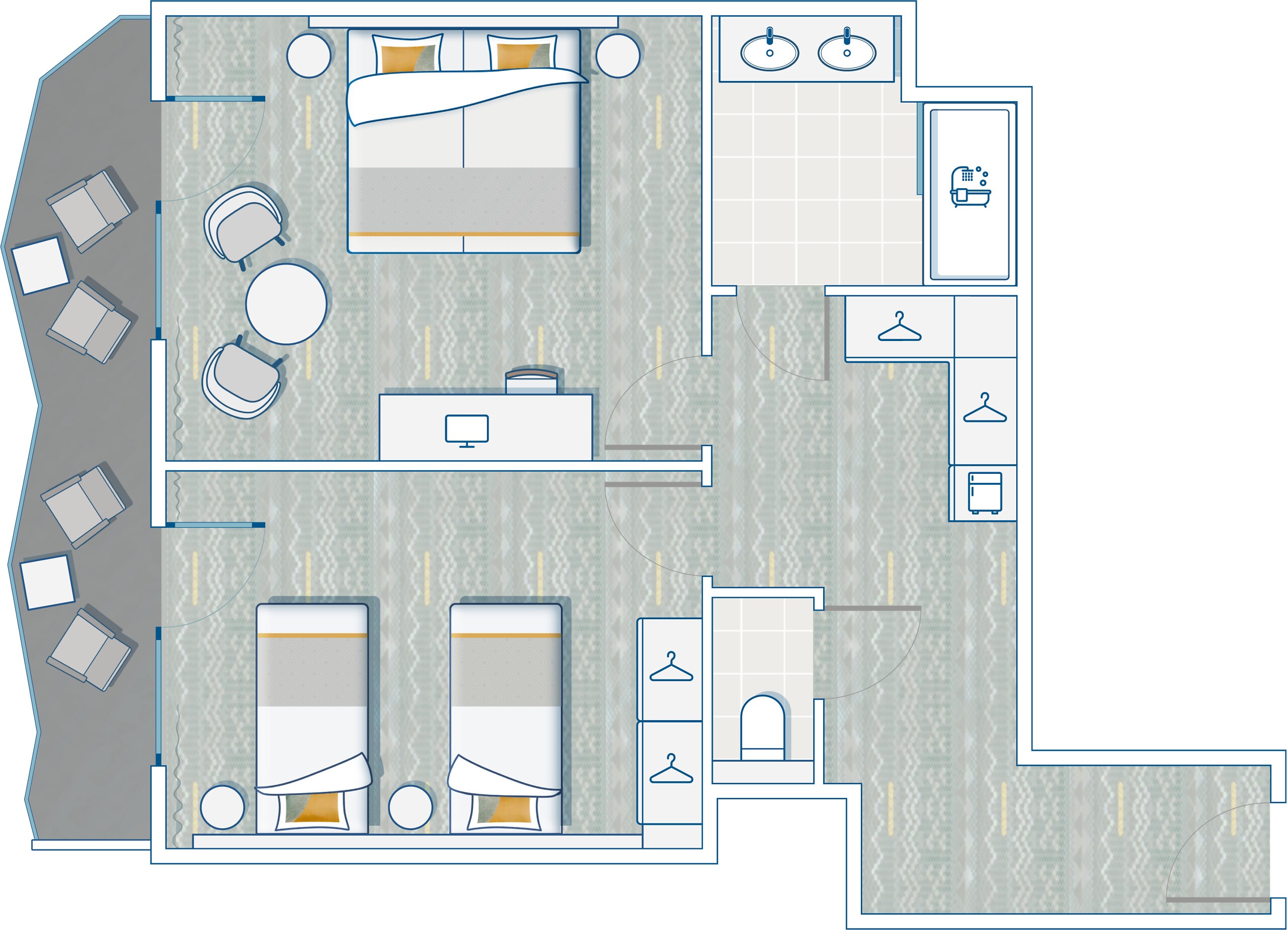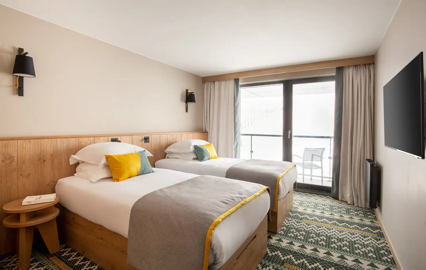 Per le famiglie in cerca di un luogo accogliente e confortevole con un tocco di stile, questa camera comprende due spazi notte separati. I genitori dispongono di un'area salotto privata. L'armonia dei colori e dei materiali crea un'atmosfera accogliente.