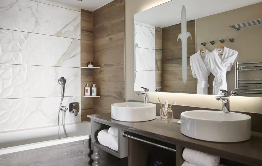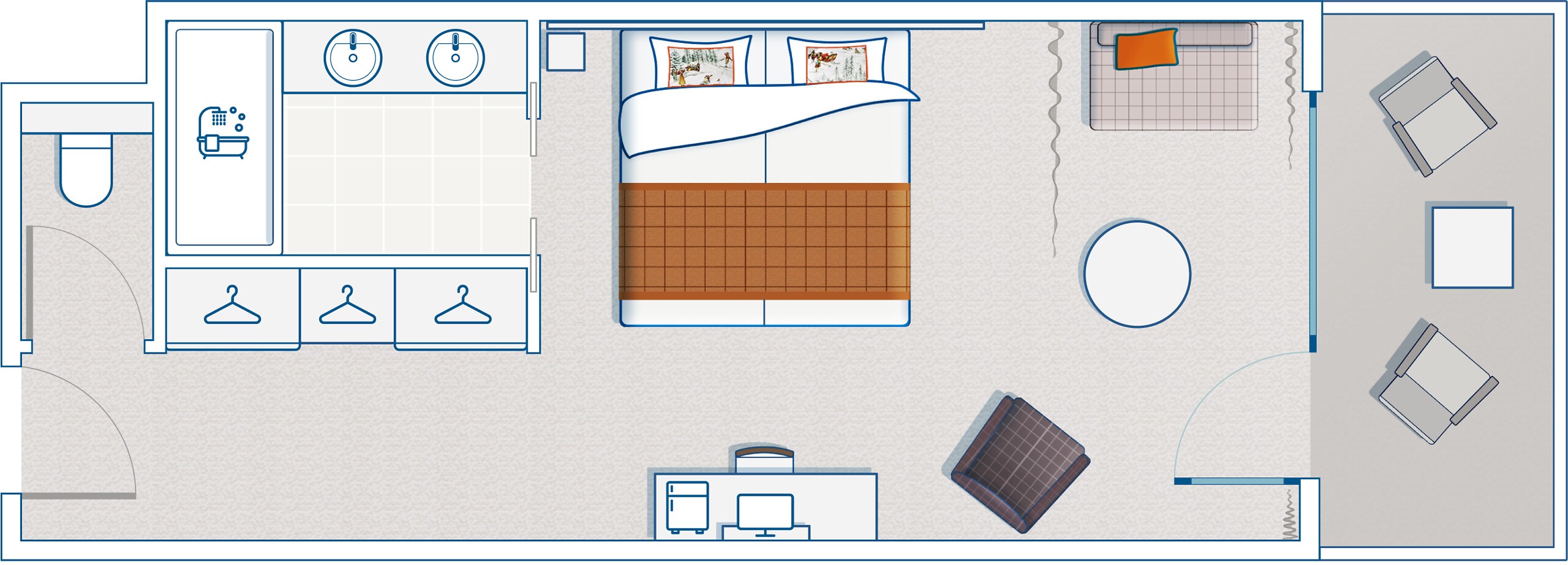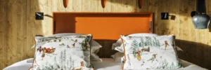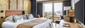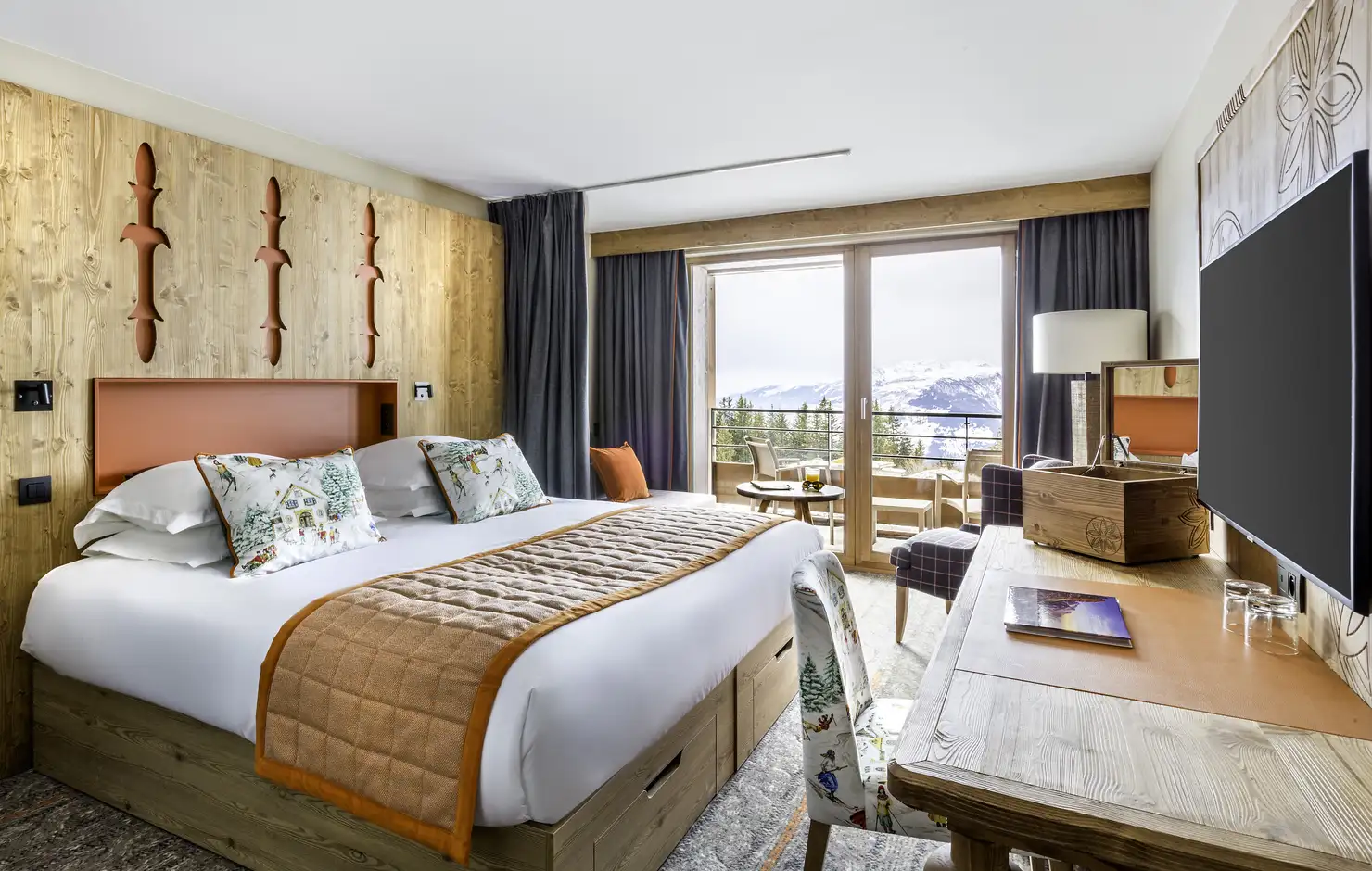 La camera Deluxe è spaziosa e dotata di un balcone arredato. E' perfetta per le coppie e per le famiglie con un bambino piccolo. Una poltrona che si trasforma in letto, separata dal resto della camera da una tenda, offre il perfetto spazio per il sonno dei bambini piccoli (11 anni e più piccoli). Il legno, i tessuti di lana e gli elementi decorativi celebrano la tradizione della montagna.