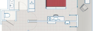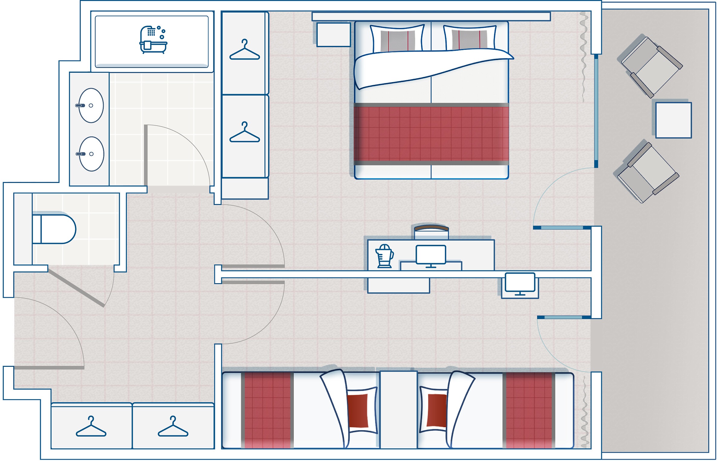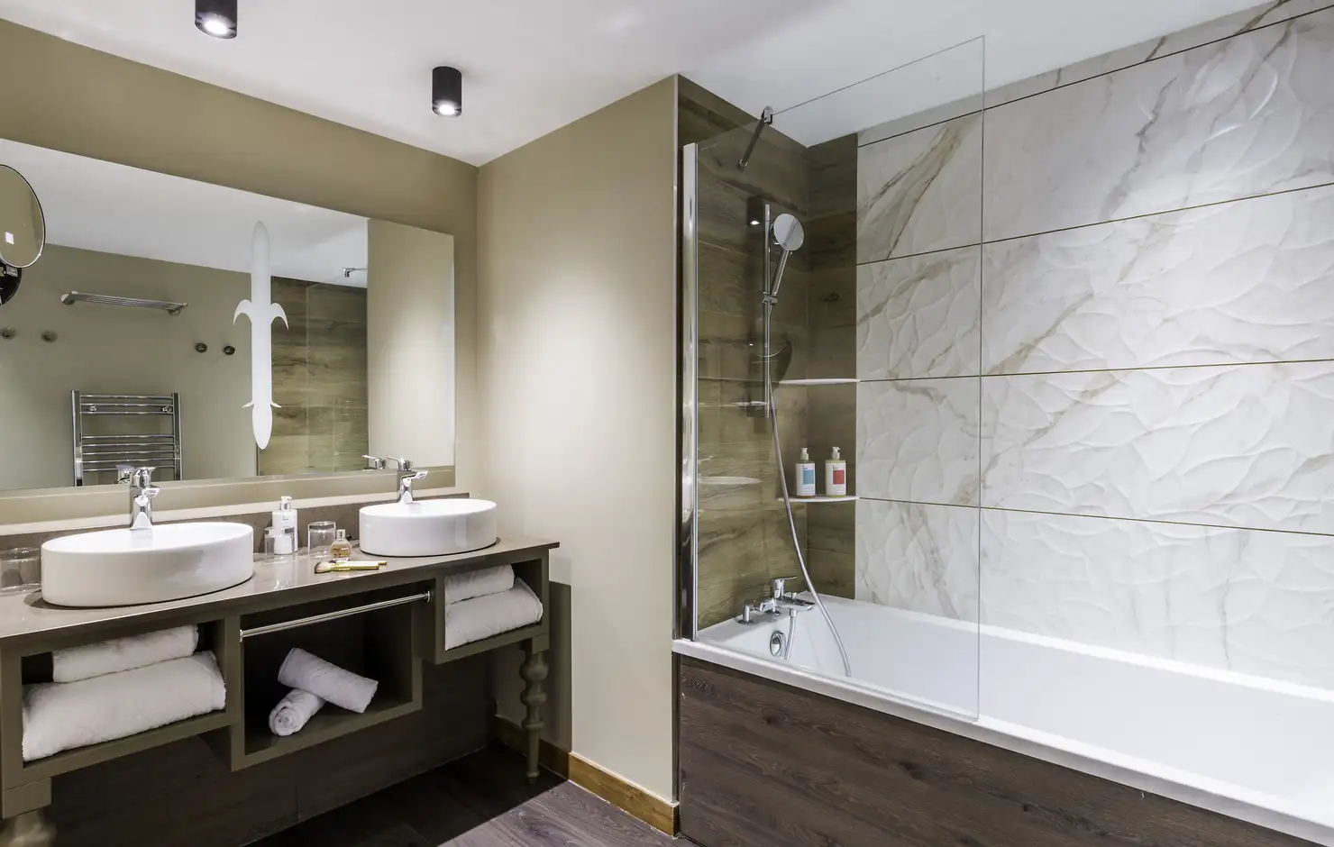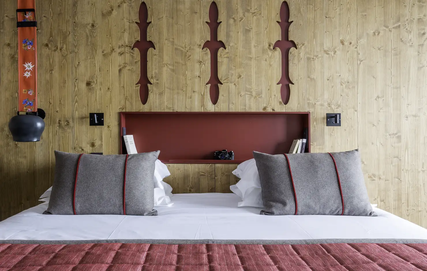 La camera è ideale per le famiglie ed è progettata con 2 spazi notturni separati, un bagno e un balcone arredato. La camera rende omaggio alla tradizione della montagna. Il legno, la campana e i motivi floreali tipici della Savoia, come la stella alpina, sono tutte caratteristiche tradizionali degli chalet alpini.