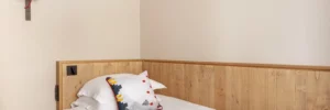Con due posti letto separati da un bagno in comune, questa camera è adatta alle famiglie.