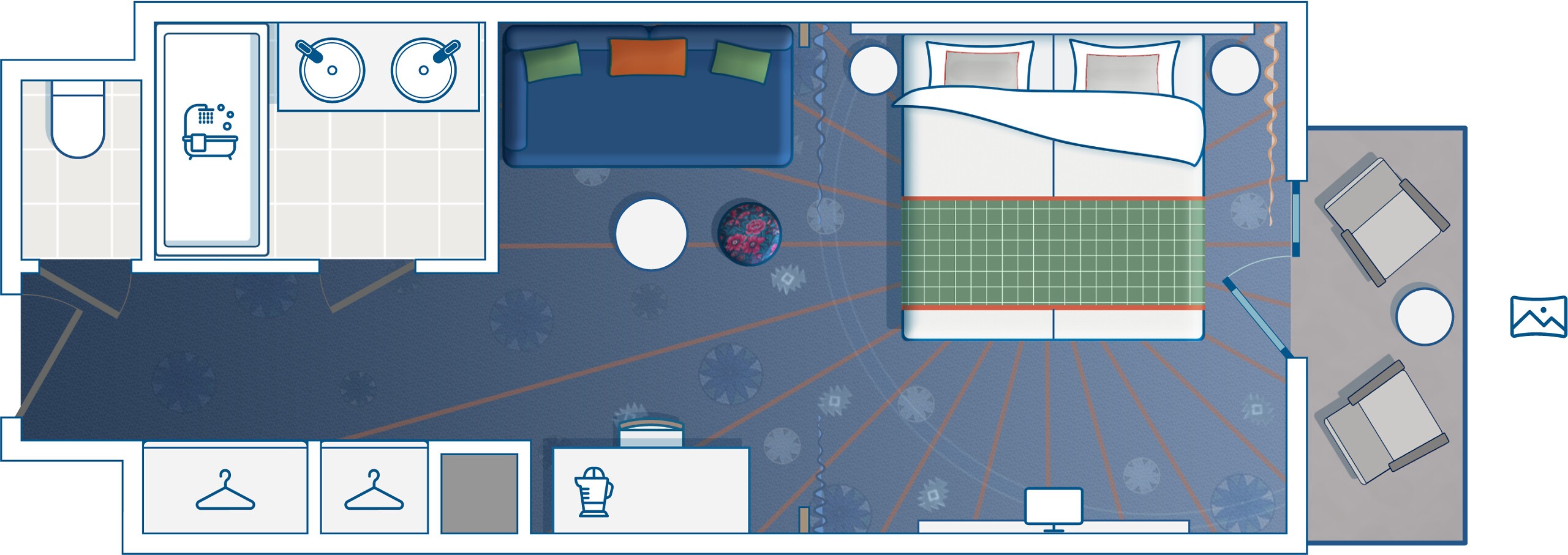 Questa camera con balcone e vista celebra il sole eccezionale del resort. Ideale per le famiglie con un bambino fino a 11 anni, garantisce comfort e privacy grazie alle zone notturne separate da una spessa tenda.