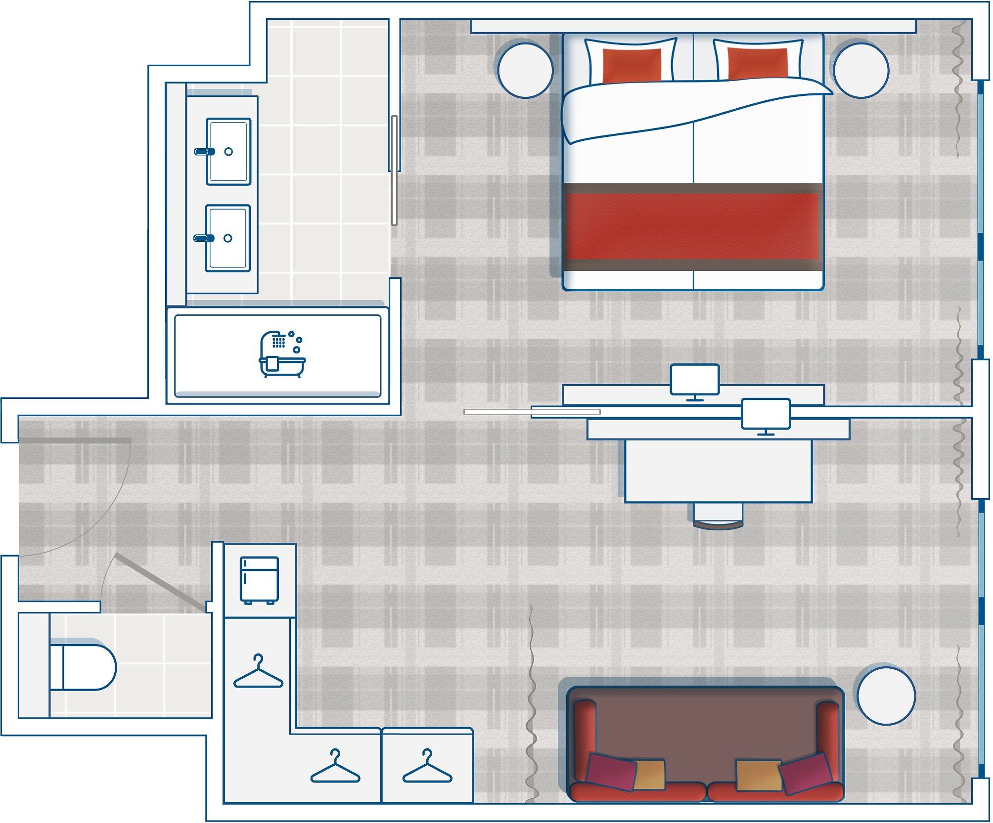- Minibar (non-alcoholic drinks) – refilled upon request