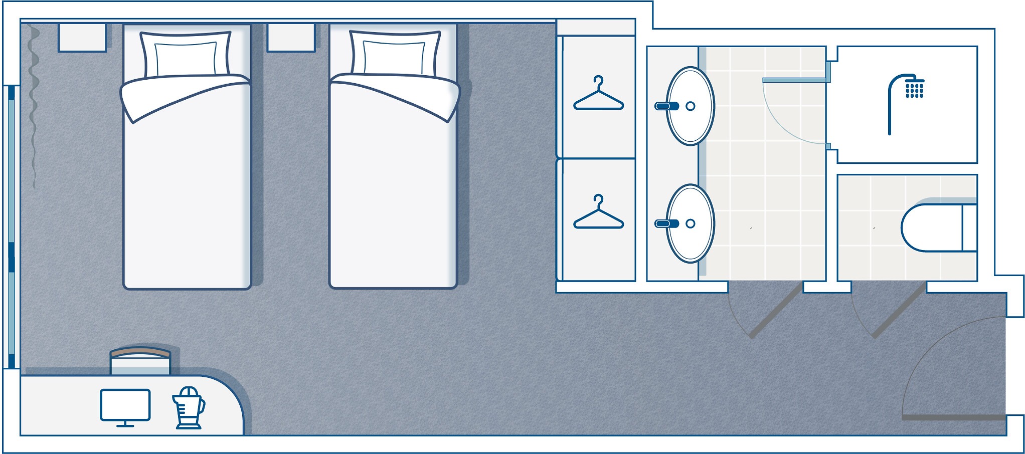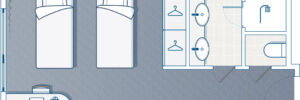 Queste camere con vista sull’abetaia dietro l’albergo o sulla città, sono adatte a 2 persone. L’interno progettato con cura presenta semplici mobili in legno.