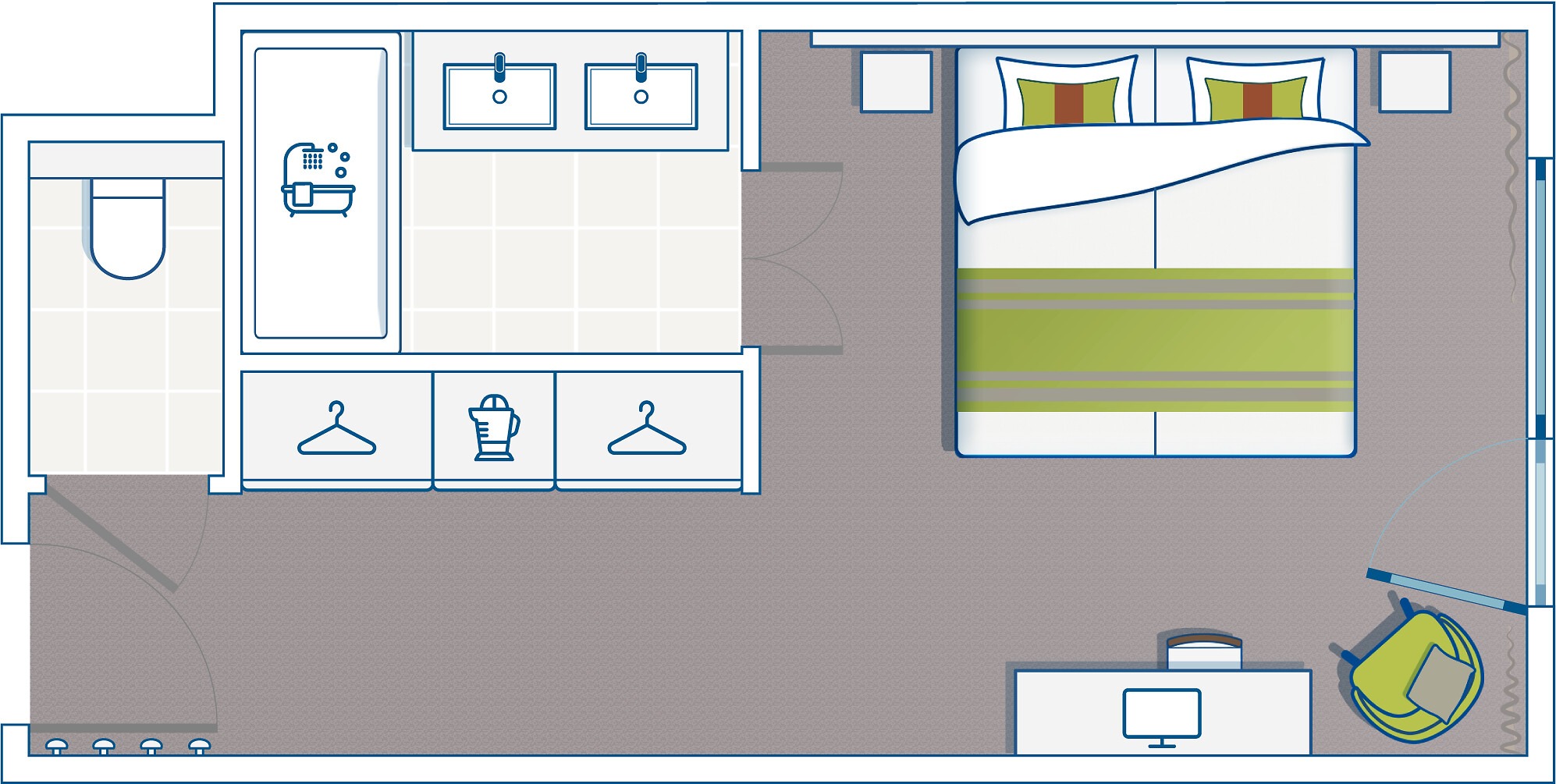 Queste stanze, distribuite in tutto il Resort, sono luminose, pratiche ed eleganti. Anice verde e disegni floreali vi portano la natura in camera.