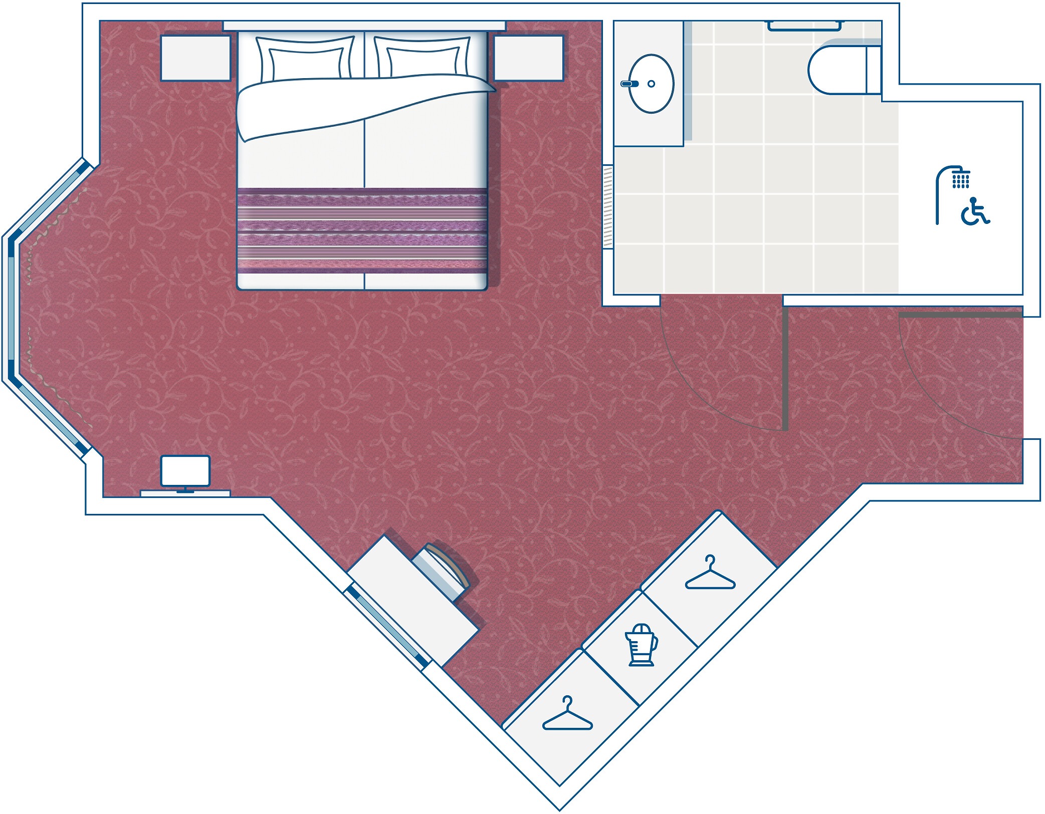 Situate tra i piani secondo e settimo, queste camere hanno risorse speciali per le persone con ridotta mobilità.
