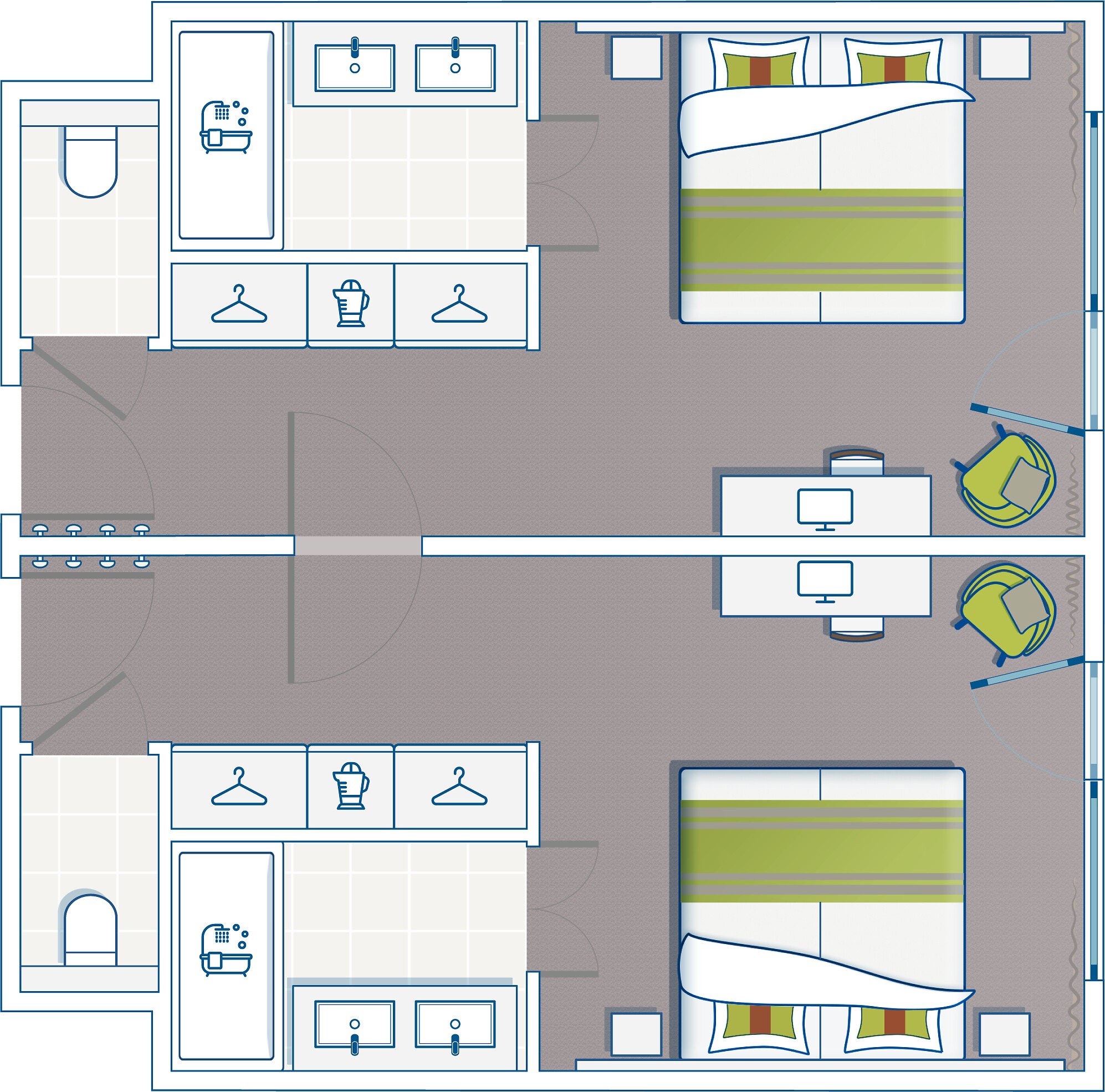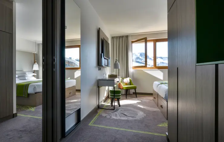 Volete sfruttare al massimo la natura insieme alla vostra famiglia? Queste camere silenziose, con i loro temi naturali, sono l’ideale. Le grandi finestre le rendono luminose e ariose.