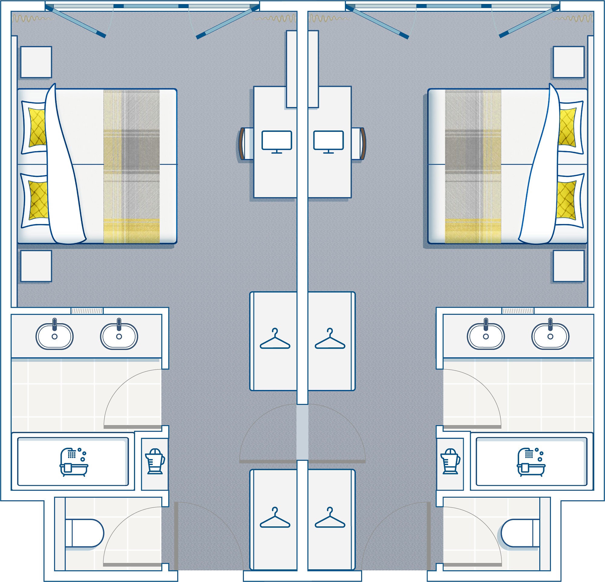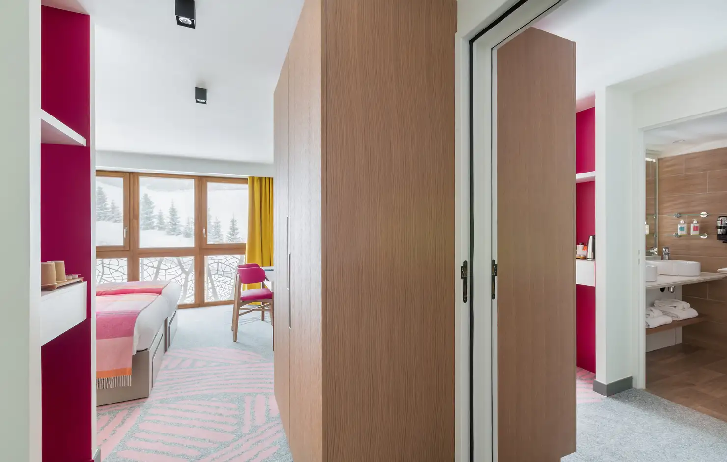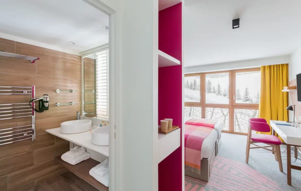Due camere comunicanti: la soluzione perfetta per le famiglie che assicura una maggior privacy ai genitori. Grandi e piccini saranno entusiasti della vista, del comodo mobilio e dei colori scelti.