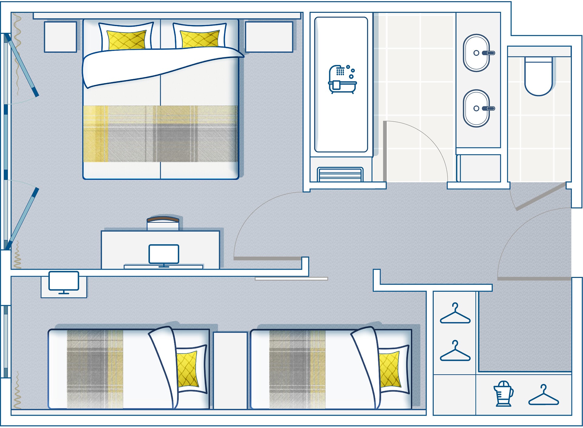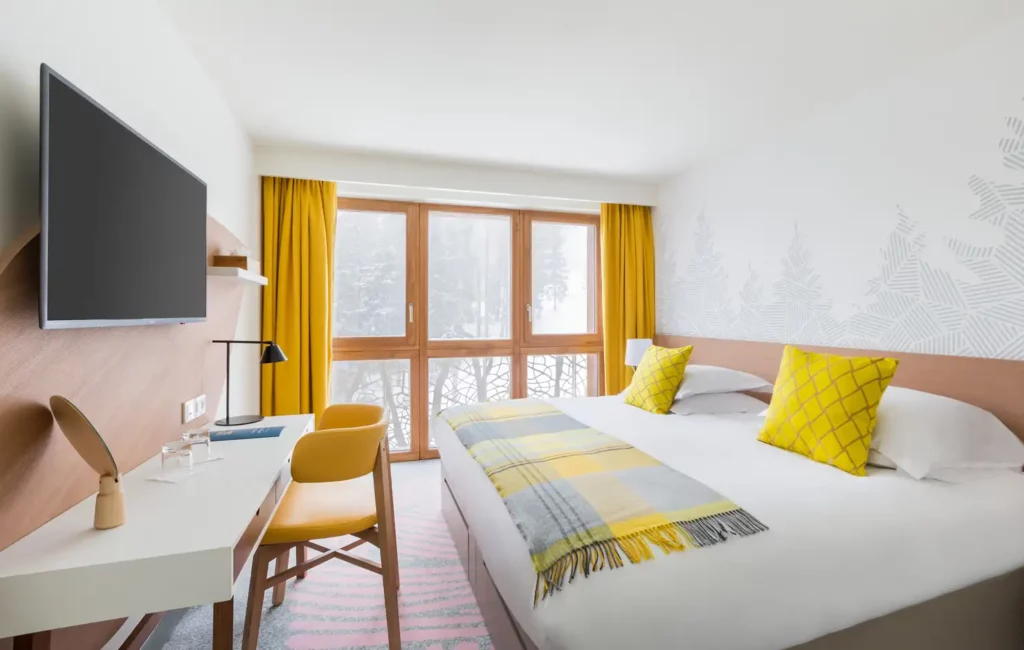 Le famiglie con figli piccoli spesso apprezzano che i piccoli abbiano lo spazio notte separato. Queste camere comode e luminose sono assolutamente affascinanti. L’ambiente, nei colori giallo e rosa, è realmente alla moda.