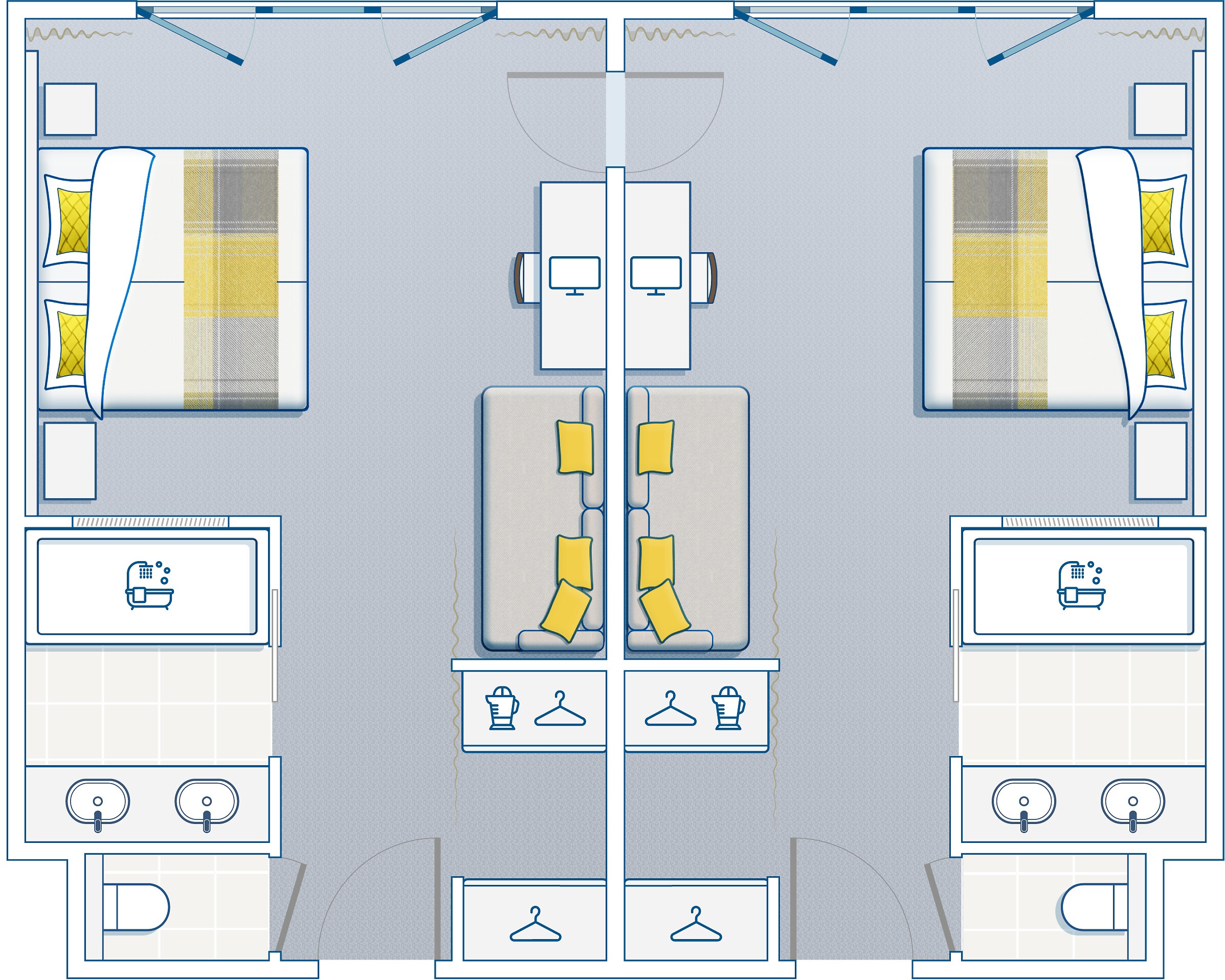 Abbiamo anche varie opzioni per le famiglie numerose. Queste camere abbinate possono agevolmente soddisfare le esigenze di sei persone. Le vacanze in questo ambiente accogliente saranno perfette per tutti.
