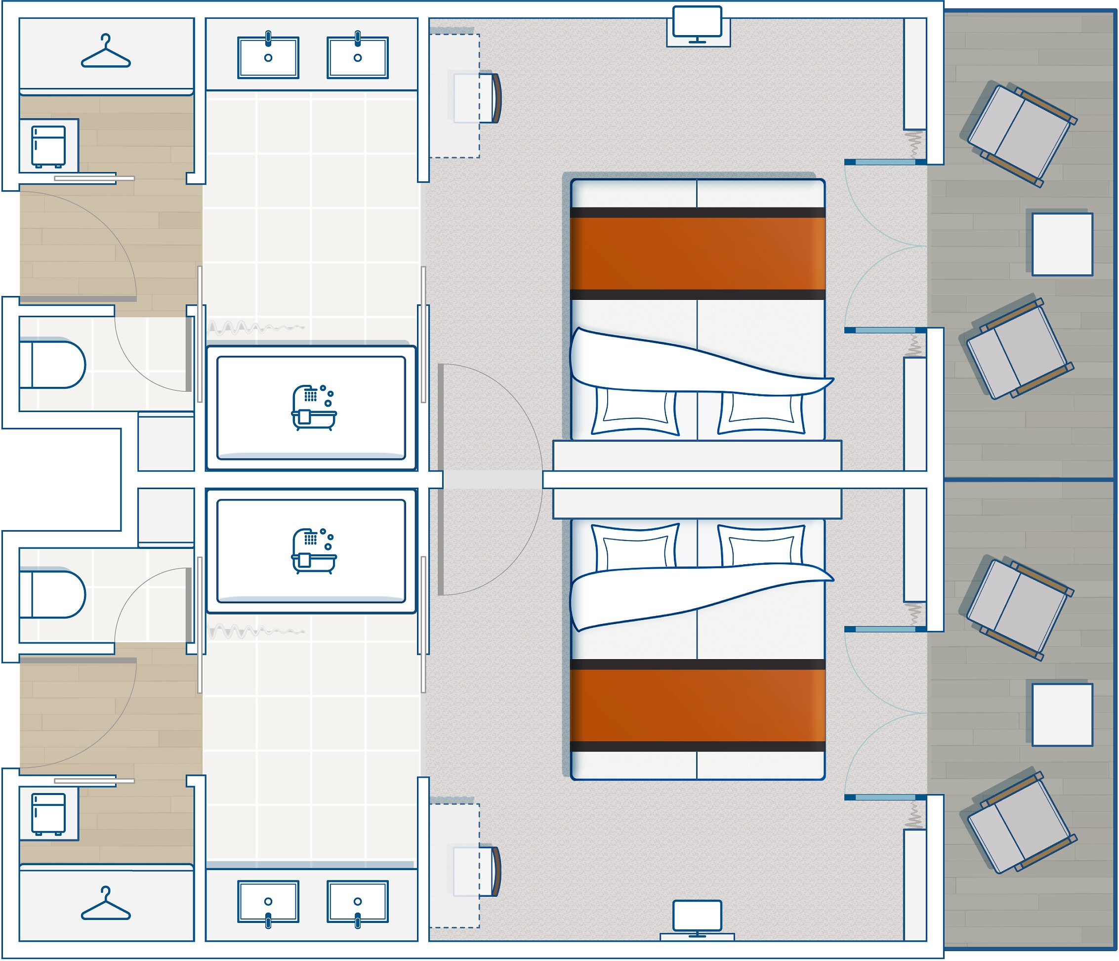 La camera è ben disposta, funzionale e al tempo stesso confortevole ed elegante, con mobili dalle linee pulite. Un balcone permette anche di godere della vista e di respirare l'aria pura di montagna.