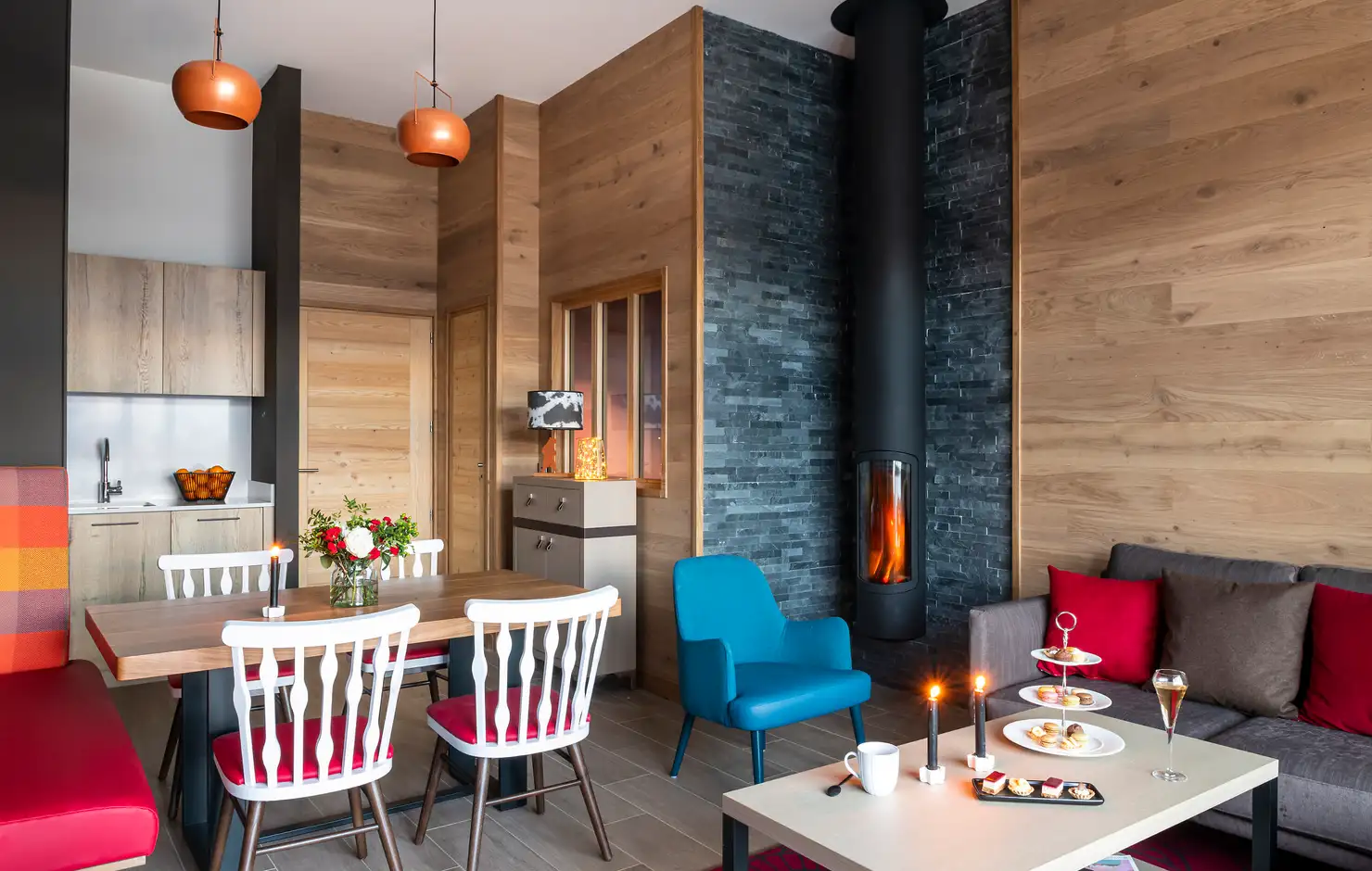 Il soggiorno ad angolo che si apre su un'ampia terrazza arredata rende questo chalet particolarmente adatto alle famiglie. Con 3 camere da letto, di cui una al primo piano, lo spazio principale al piano terra consente una facile circolazione alle persone con mobilità ridotta. Il design contemporaneo unisce elegantemente comfort, raffinatezza e un'atmosfera accogliente.