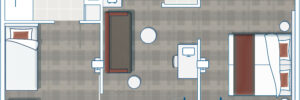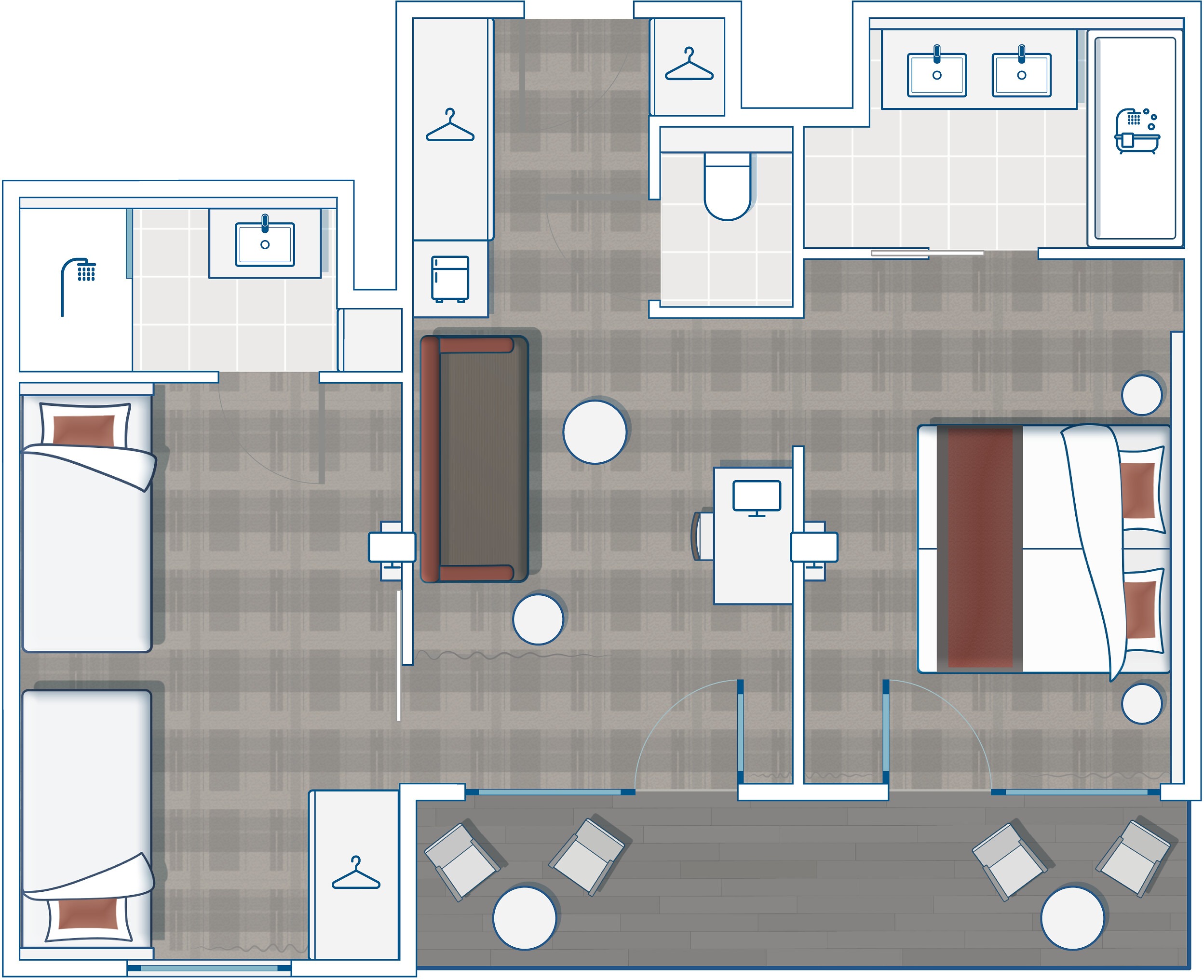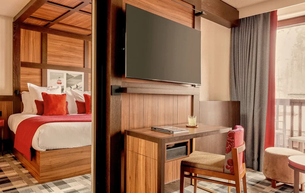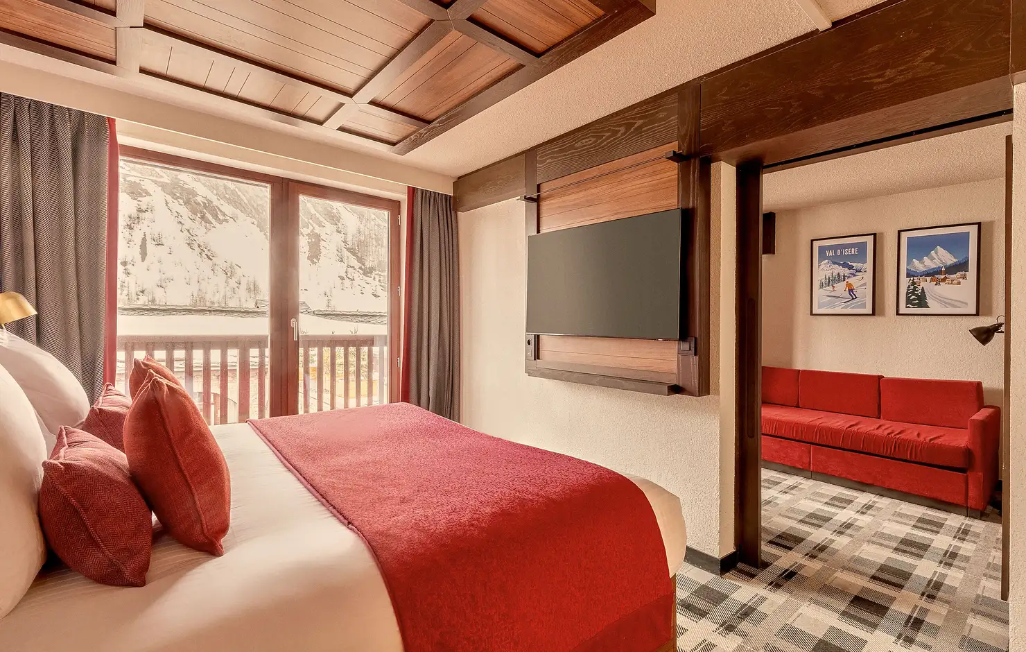 Le famiglie in cerca di comfort e privacy amano questa Junior Suite. Le sfumature di rosso creano un'atmosfera accogliente. Gli spazi notte separati sono una vera manna per genitori e figli. Un bambino sotto gli 8 anni può dormire nel soggiorno.