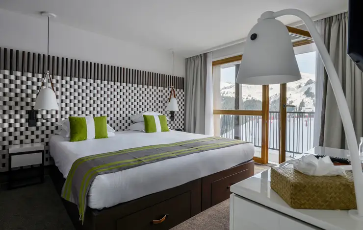 Le grandi vetrate di questa Suite catturano il sole e la rendono davvero affascinante. Il design dei mobili, l’uso di materiali naturali e la combinazione di colori, ispirata agli alberi, creano uno spazio calmo e tranquillo.