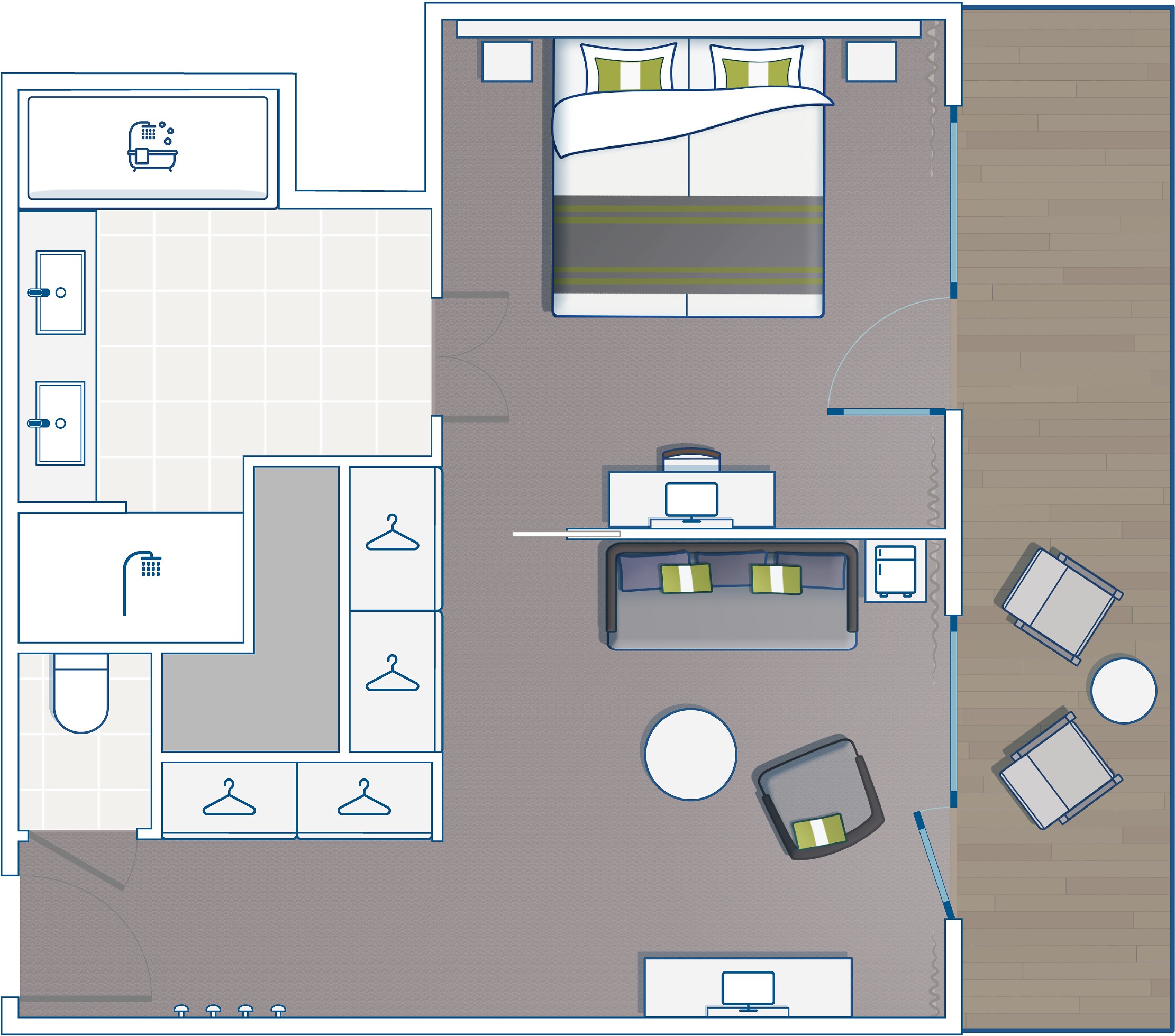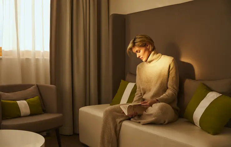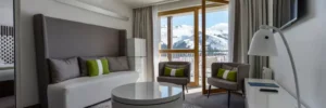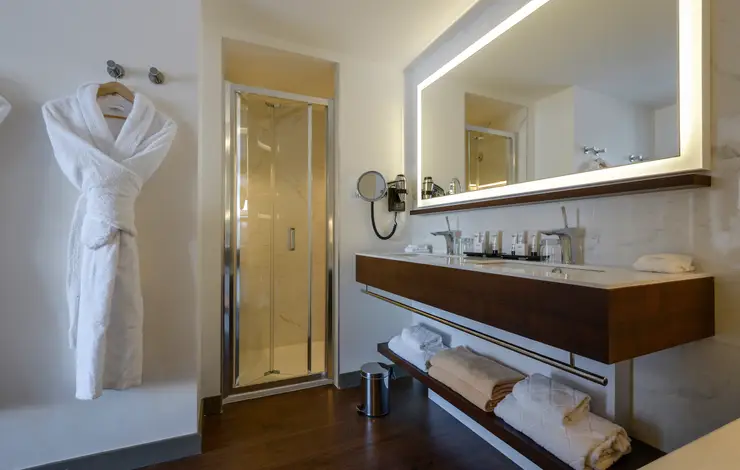 Le grandi vetrate di questa Suite catturano il sole e la rendono davvero affascinante. Il design dei mobili, l’uso di materiali naturali e la combinazione di colori, ispirata agli alberi, creano uno spazio calmo e tranquillo.