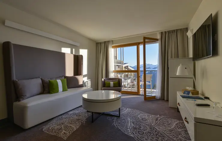 Balcone, soggiorno, bagno e camera da letto facilmente accessibili per le persone con ridotta mobilità. Il comfort e lo stile di questa Suite aumentano il piacere della vacanza.