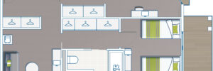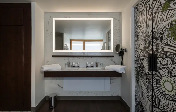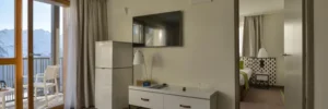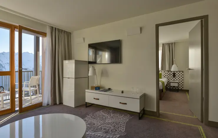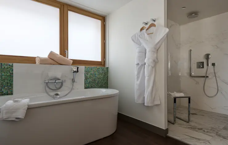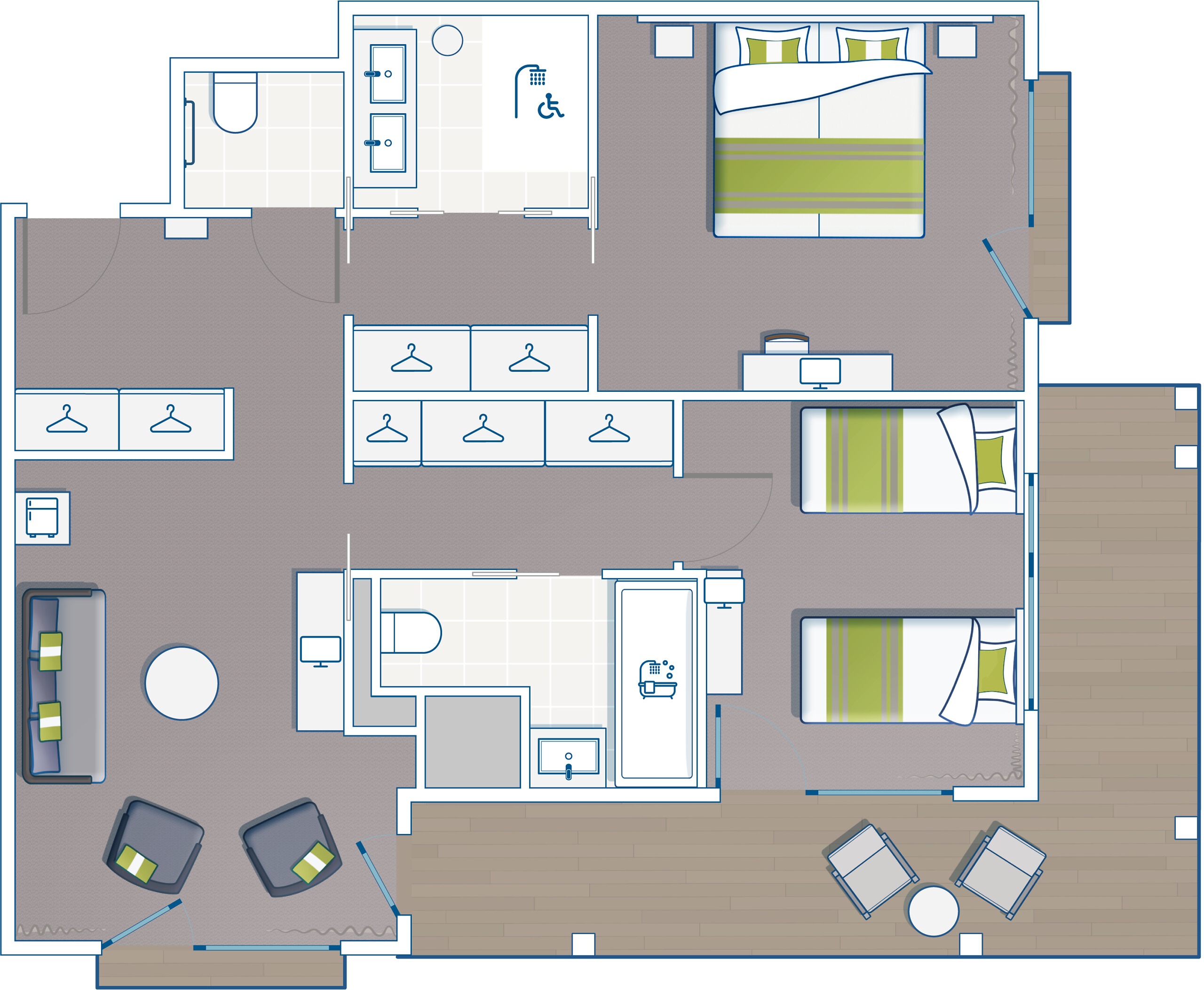 Balcone, soggiorno, bagno e camera da letto facilmente accessibili per le persone con ridotta mobilità. Il comfort e lo stile di questa Suite aumentano il piacere della vacanza.