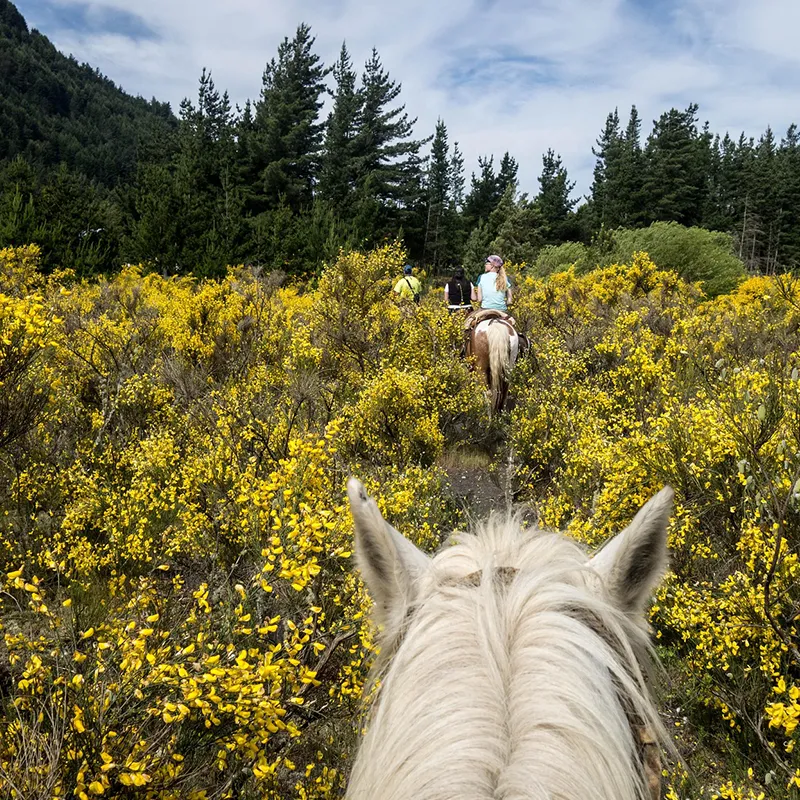 Cavalcata durante la mattina per iniziare la salita di montagna fino al Cordon de los Cristales. Più si va in alto e più nitide diventano le vedute dei Laghi Brazo Rico e Sur, Lago Roca e Cerro Frias. Una volta arrivati il percorso si addentra nel Bosco Andino Patagonico. Arrivati faremo il pranzo (tipo pic-nic).