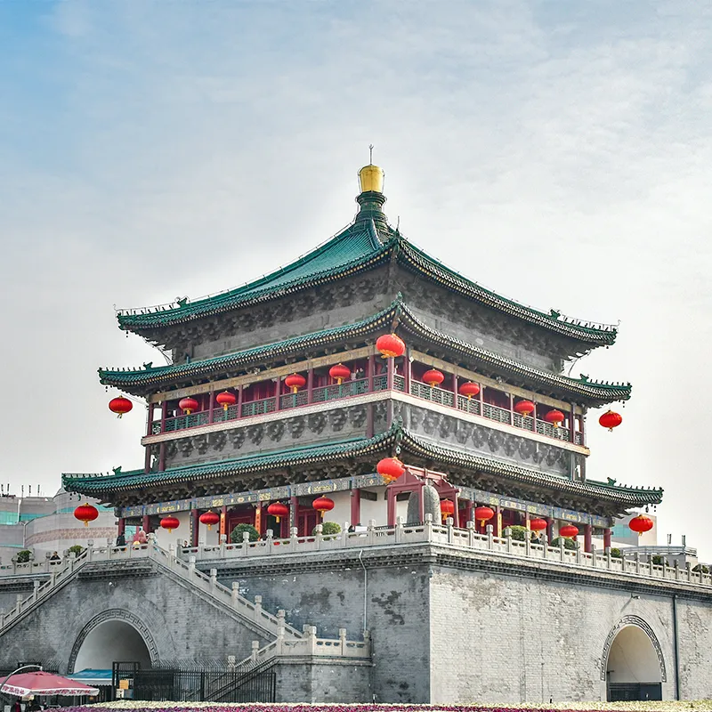 Prima colazione in albergo. In mattina check-out dall’albergo. Partenza per la visita al Tempio del Cielo, in origine enorme parco per i solenni riti religiosi e divinatori eseguiti dal Figlio del Cielo dal 1420. Pranzo in ristorante locale. Dopo pranzo trasferimento in stazione ferroviaria, partenza in treno veloce per Xi’an (circa 4,5 ore). Arrivo a Xi’an, trasferimento in hotel passando in auto la cinta muraria illuminata di Xi’an. Cena a set menù occidentale in hotel e pernottamento.