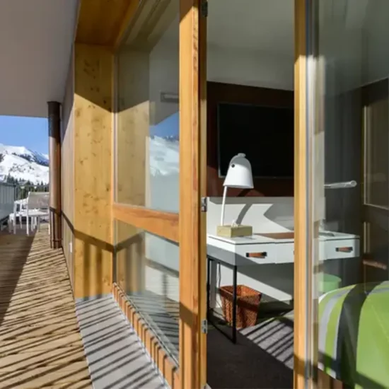Il design moderno, dall’atmosfera accogliente, si integra alla natura e offre una vista a 360° sulle montagne circostanti.