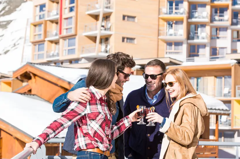 A 2.300 metri di altitudine, il Resort Club Med All Inclusive Val Thorens Sensations è un rifugio contemporaneo di alta montagna. Le sue grandi vetrate inondano lo spazio di luce illuminando le travi in legno chiaro e i balconi colorati. Respira a pieni polmoni l’aria fresca della stazione sciistica probabilmente più bella del mondo, situata nel cuore del più grande comprensorio sciistico. Al bar Oxygen, di colore rosa e a forma di origami, sorseggia un bicchiere di chartreuse prima che inizi la festa.
