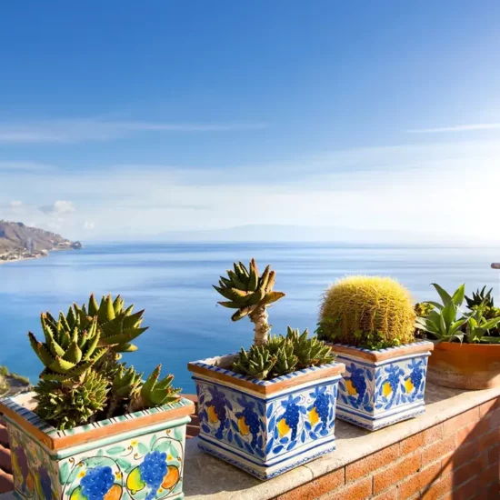 Arroccata sul Monte Tauro, la città sembra guardare le magnifiche baie e il maestoso Monte Etna. Vanta un affascinante patrimonio storico che comprende l'antico teatro greco-romano. Barche all'ancora, sport acquatici.