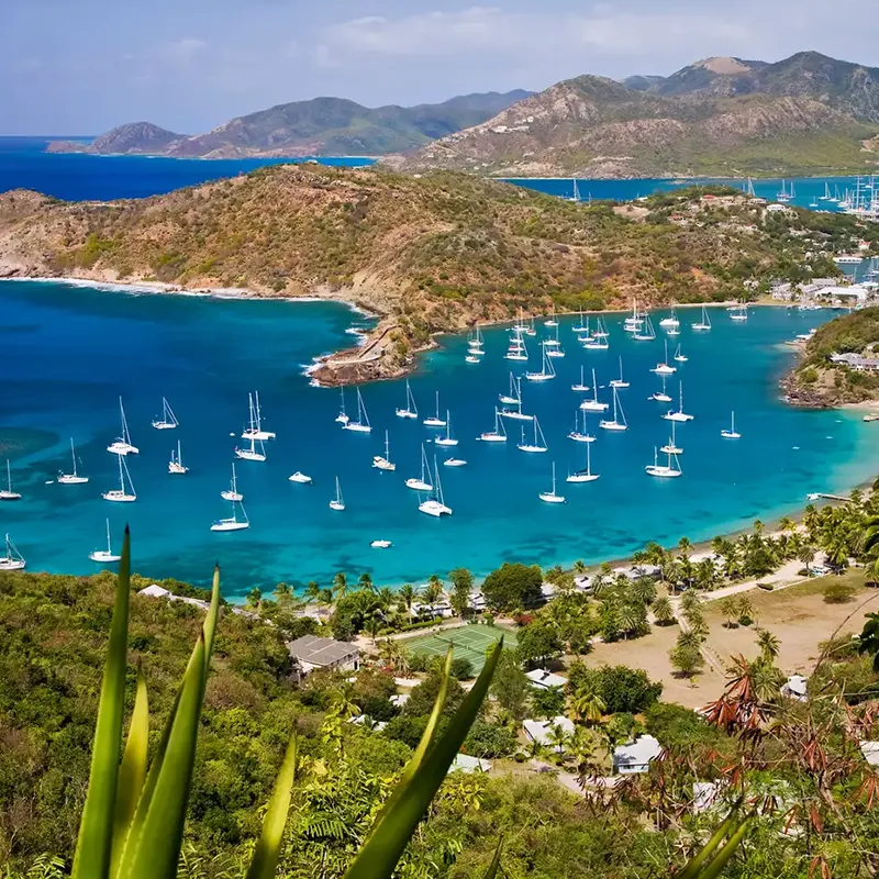 Minuscola isola dominata da un vulcano e sorella di Saint- Kitts, ha fascino da vendere: sorgenti d'acqua calda, siti archeologici, una foresta abitata da scimmie verdi e la passione per il cricket. Alla fonda. Spiaggia e sport nautici. Escursione* disponibile dalla prenotazione: Catamarano a Nevis.