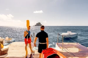 Questa attività è proposta dalla hall nautica della barca, che si trova sul retro della barca o su una piattaforma di 85 m2 che si apre sul mare. L’apertura della hall nautica non è sistematica, viene fatta solamente su alcuni scali. Dipende dalle autorità locali e delle condizioni climatiche e quando la barca è ancorata.